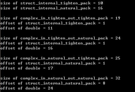 我们有四种情况: 1. pack紧缩,complex _pack紧缩 2. pack紧缩,complex _pack默认 3. pack默认,complex _pack紧缩 4. pack默认,complex _pack默认